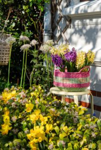 ¿Tiene un jardín con arriates? En ese caso, puede combinar bulbos con plantas vivaces o gramíneas ornamentales para conseguir un efecto de capas. Pero los bulbos de flores también lucen muy bien en macetas o jardineras. Una bonita sugerencia: plante en capas (lo que se conoce como «método lasaña»), es decir, plantando tipos de bulbos diferentes en capas superpuestas para conseguir una temporada de floración más larga. Empiece por los bulbos más grandes (como tulipanes), encima una capa de bulbos de tamaño mediano (por ejemplo, jacintos) y termine con bulbos pequeños como los crocos. Así, la maceta o el arriate florecerá por etapas y usted disfrutará de las flores durante semanas.